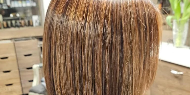 Šaknų dažymas, balayage, ombre ir atstatomosios plaukų procedūros.